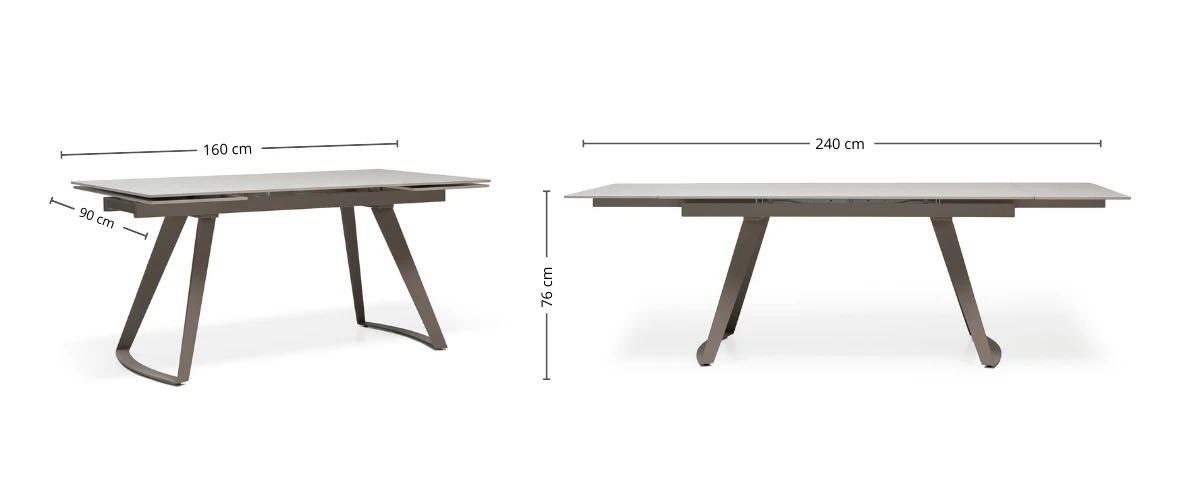 Con la mesa de comedor Vivire C02 en tu casa, hay lugar para todos. Su formato rectangular de 1,60 x 0,90 m se adapta al uso diario y, gracias a su sistema extensible suave y ligero, se amplía fácilmente hasta 2,40 m para recibir a más invitados sin esfuerzo. La tapa de piedra mármol sintético color beige aporta presencia y durabilidad, mientras que sus patas metálicas en tono beige completan un diseño equilibrado, moderno y funcional, pensado para acompañar cada encuentro.
