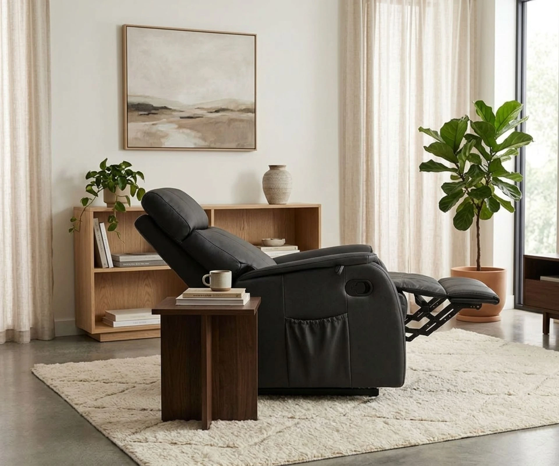 El sillón reclinable Georgia es confort y placer, sus formas te invitan a una cómoda tarde de lectura o siesta sin preocuparse por el mundo exterior. Podrás disfrutar de todas sus partes móviles incluyendo un apoya pies de accionamiento manual a gatillo para acostarte o acurrucarte a gusto. Su tapizado en P.U. lo hace muy resistente y esta disponible en colores negro y visón.