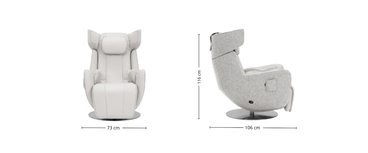 Orbit redefine el descanso con una experiencia de masaje inteligente y personalizada. Su sistema de reconocimiento corporal detecta la fisonomía del usuario y ajusta automáticamente la altura de los hombros para un encastre preciso desde el primer uso. Cuenta con 14 programas automáticos, 5 niveles de intensidad y 3 velocidades, además de la posición Gravedad Cero, que alivia la presión sobre la columna y mejora la circulación. Los airbags integrados masajean cadera y cintura, mientras que el calor regulable en 3 niveles actúa en espalda, asiento y piernas. La experiencia se completa con audio premium, control intuitivo con app móvil y puerto USB de carga. Ganador del Red Dot Design Award, Orbit combina innovación tecnológica y diseño contemporáneo para un descanso superior. Ganador del Red Dot Design Award, Orbit combina innovación tecnológica y diseño contemporáneo para un descanso superior.* CONSULTA CON NUESTROS ASESORES TIEMPOS DE ENTREGA *